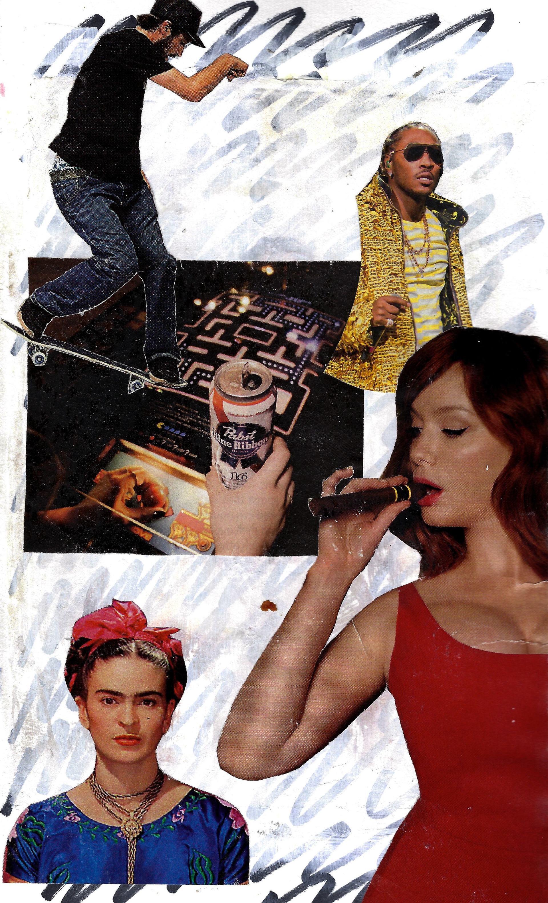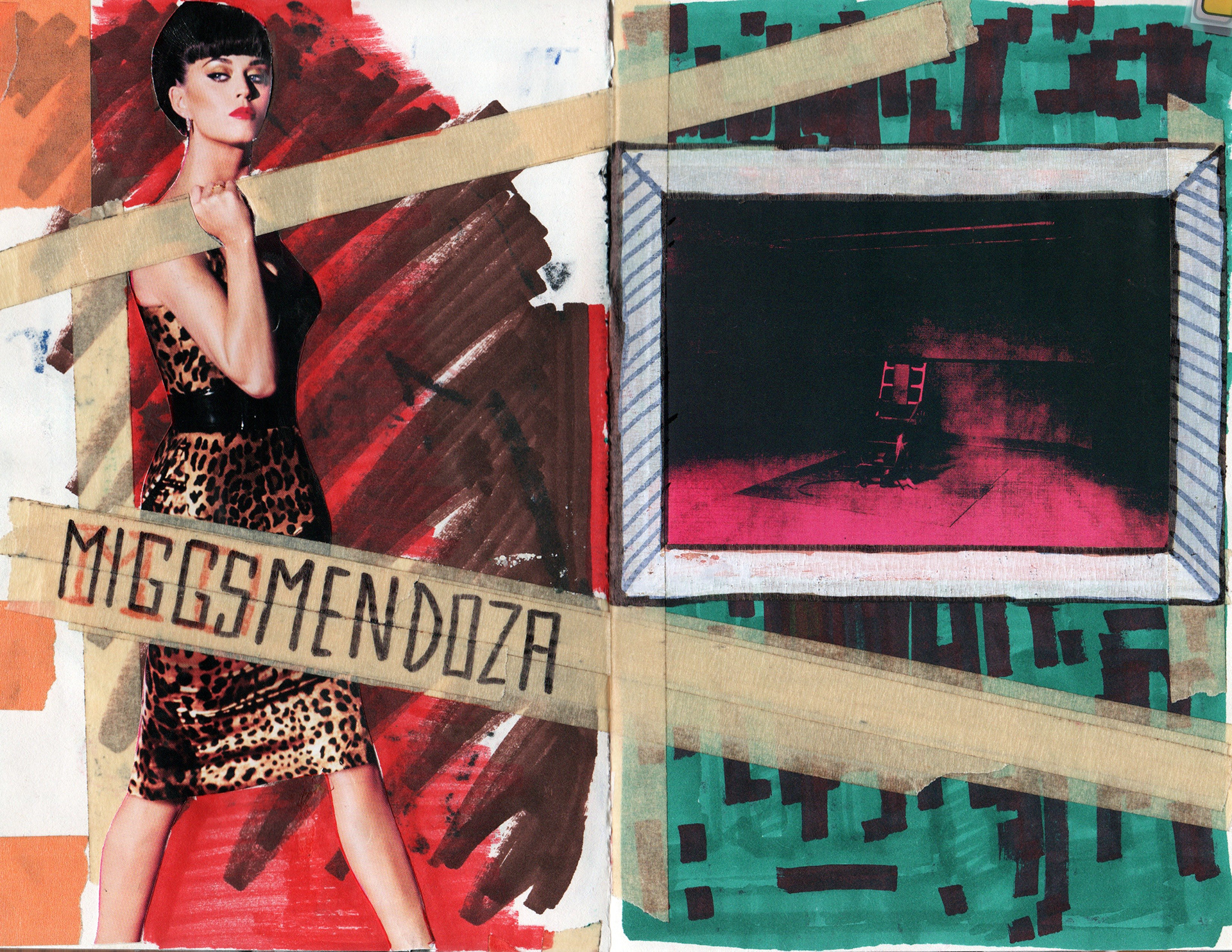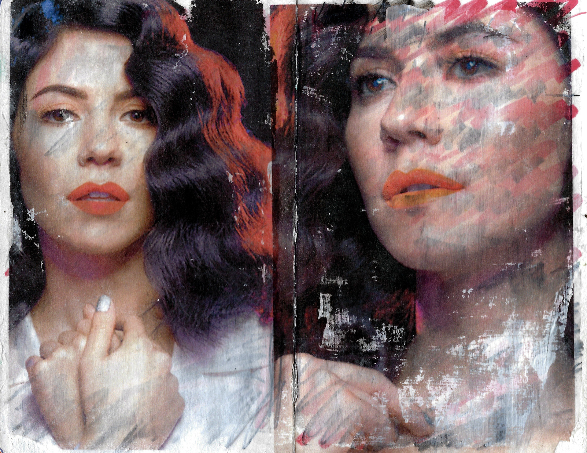 A compilation of illustrations and mixed media pieces from various sketchbooks. (Mixed media pieces made with found images collected from multiple printed sources)